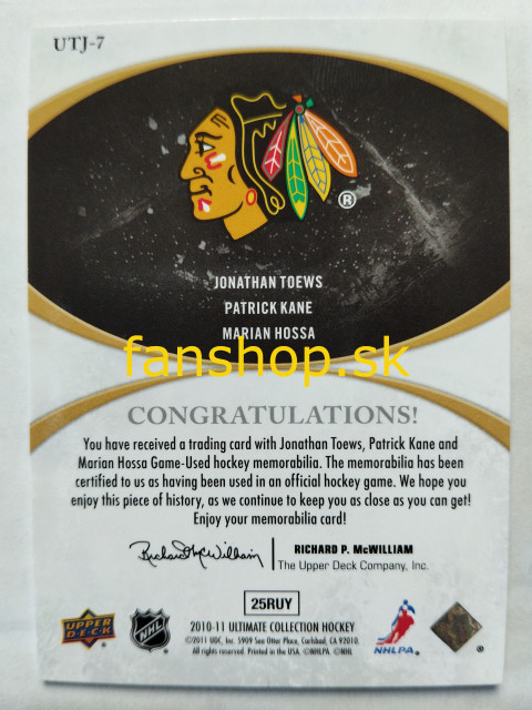 2010-11 Upper Deck Ultimate Colection Ultimate Trios Jerseys #UTJ-7 Kane / Toews / Hossa SN 09/25