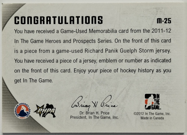 2011-12 In The Game Heroes and Prospects Game Used Jersey Black #M25 Richard Pánik PR100