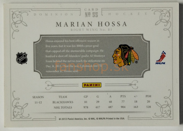 2011-12 Panini Dominion #55 Marián Hossa SN 014/199