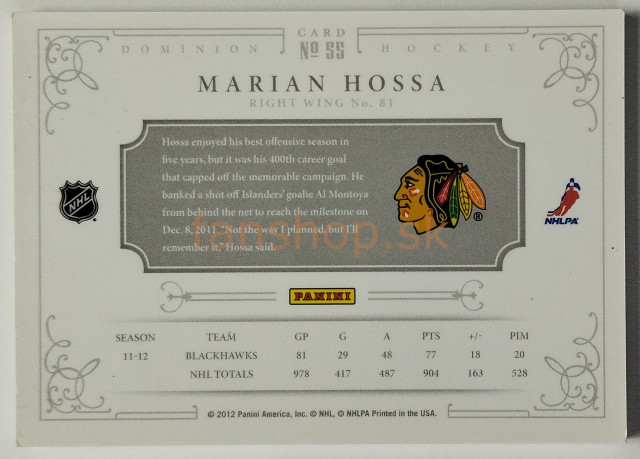 2011-12 Panini Dominion #55 Marián Hossa SN 025/199