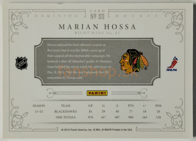 2011-12 Panini Dominion Gold #55 Marián Hossa SN 10/25