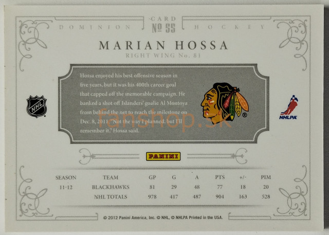 2011-12 Panini Dominion Gold #55 Marián Hossa SN 25/25