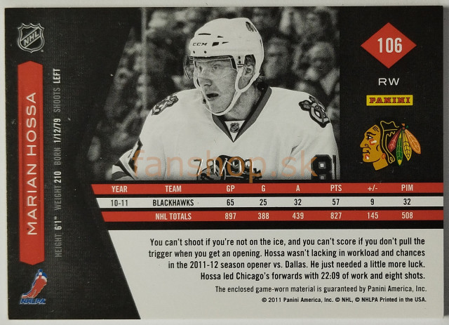 2011-12 Panini Limited Materials #106 Marián Hossa SN 79/99