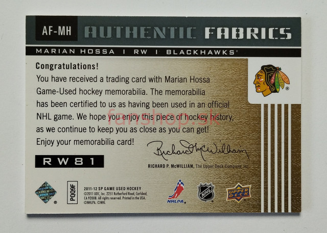 2011-12 SP Game Used Authentic Fabrics Gold #AF-MH Marián Hossa VAR R