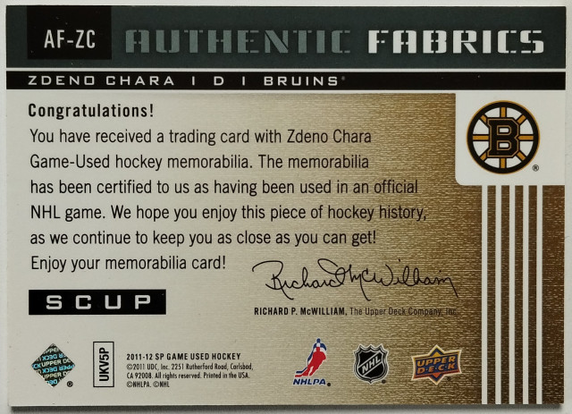 2011-12 SP Game Used Authentic Fabrics Gold #AF-ZC Zdeno Chára VAR S