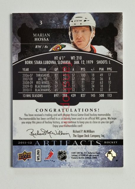 2011-12 Upper Deck Artifacts Horizontal Jerseys #3 Marián Hossa SN 20/50