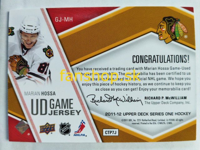 2011-12 Upper Deck Game Jerseys #GJ-MH Mari8n Hossa