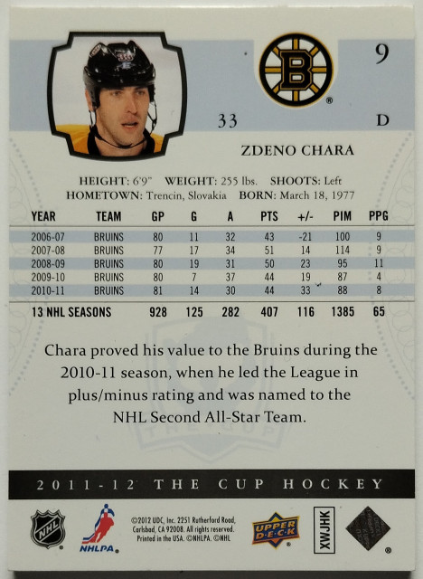 2011-12 Upper Deck The Cup #9 Zdeno Chára SN 195/249