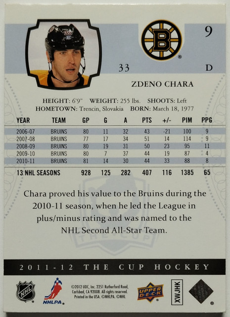 2011-12 Upper Deck The Cup #9 Zdeno Chára SN 213/249