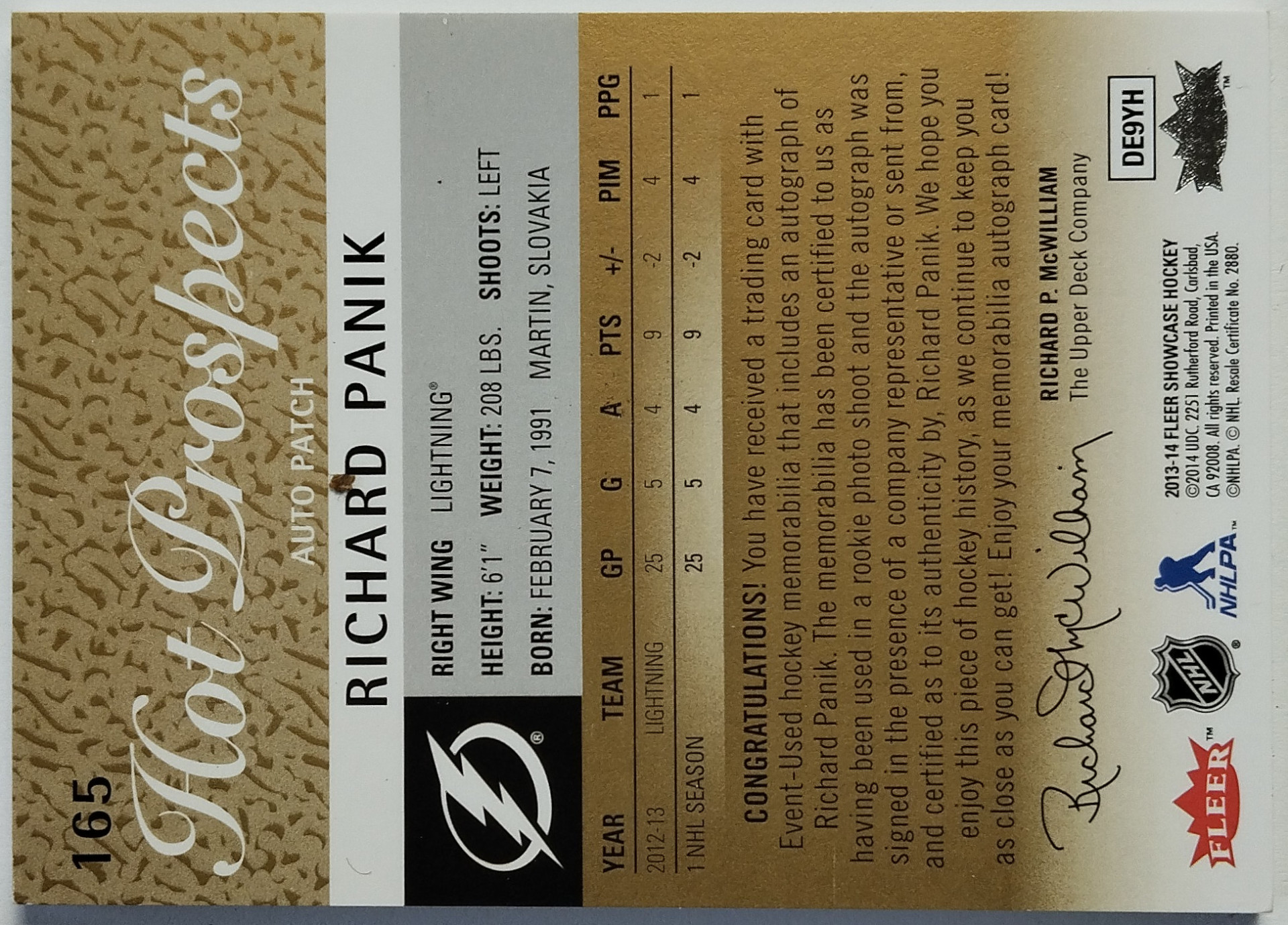 2013-14 Fleer Showcase Hot Prospects Auto Patch #165 Richard Pánik RC SN 293/375