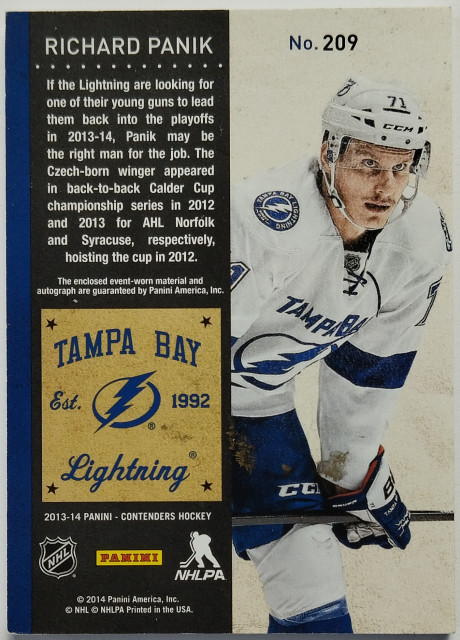 2013-14 Panini Contenders Rookie Ticket Signature Patch #209 Richard Pánik SN 054/100