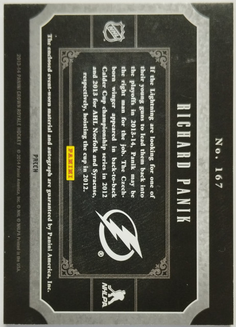 2013-14 Panini Crown Royale Rookie Silhouette Patch Auto #167 Richard Pánik RC SN 06/25