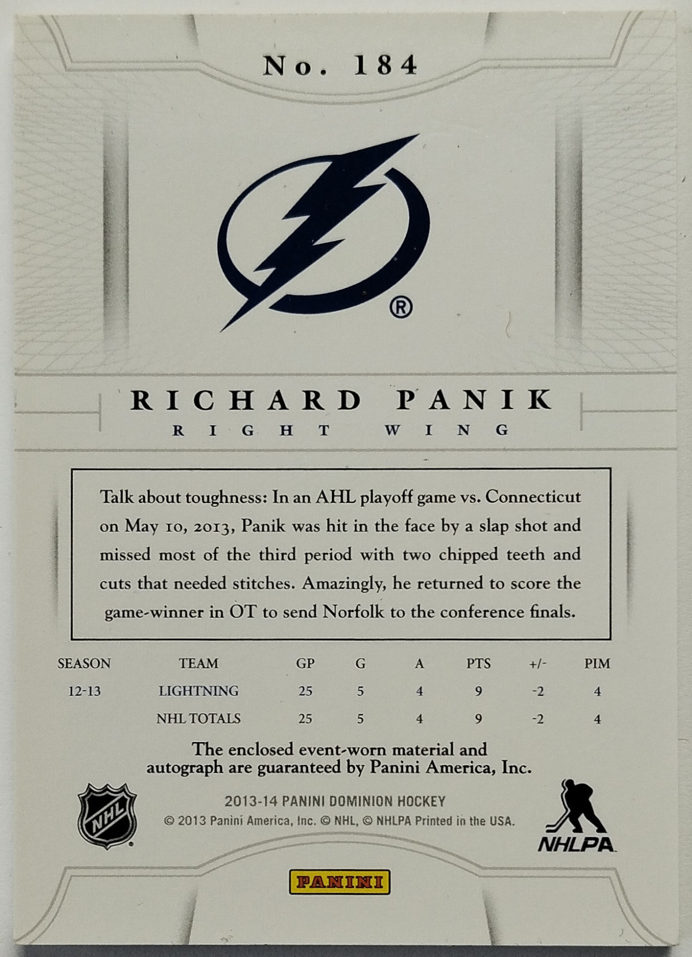 2013-14 Panini Dominion #184 Richard Pánik SN 169/299