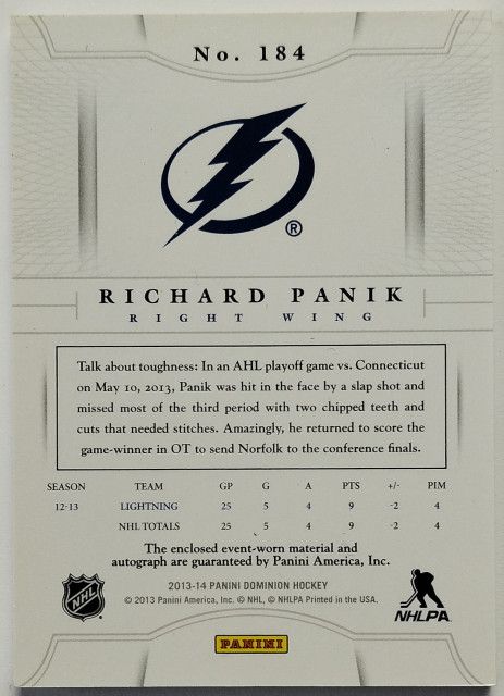 2013-14 Panini Dominion #184 Richard Pánik SN 178/299