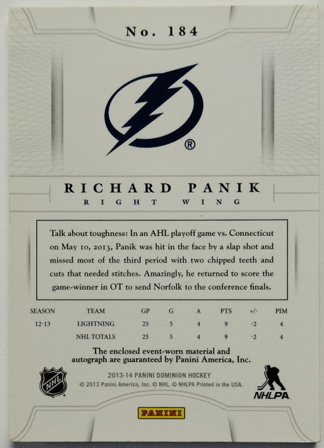 2013-14 Panini Dominion #184 Richard Pánik SN 255/299