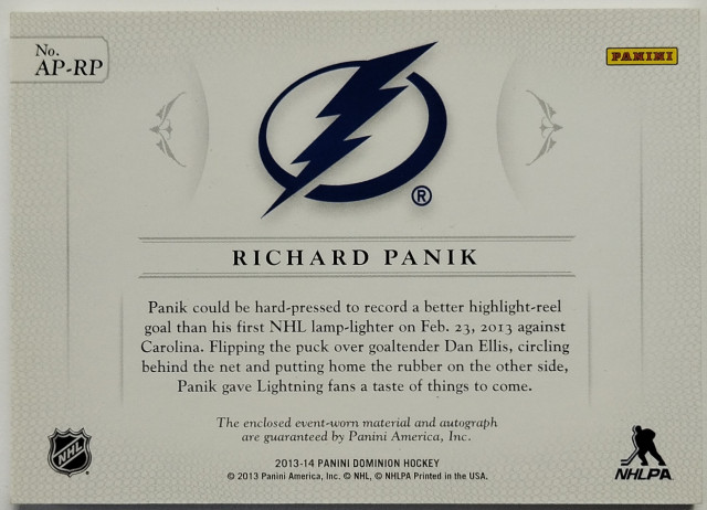 2013-14 Panini Dominion Autograph Patches #AP-RP Richard Pánik SN 30/99