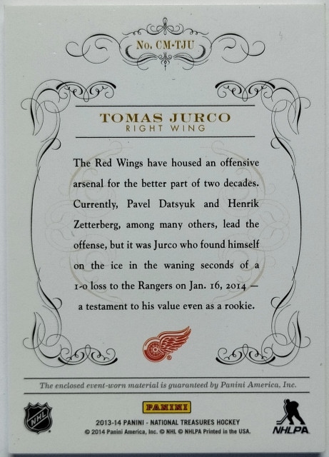 2013-14 Panini National Treasures Century Materials Jersey Patch #CM-TJU Tomáš Jurčo RC SN 06/25