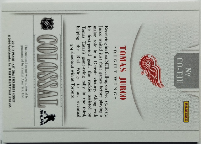 2013-14 Panini National Treasures Colossal Patch #CO-TJU Tomáš Jurčo RC SN 04/10