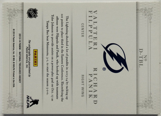 2013-14 Panini National Treasures Dual Autographs #D-TBL Filppula/Pánik SN 090/100