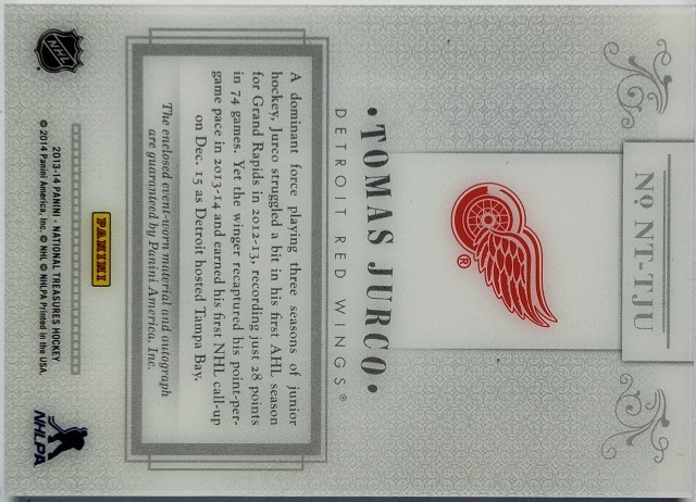 2013-14 Panini National Tresures Newfound Materials Auto Patch #NT-TJU Tomáš Jurčo SN 04/10
