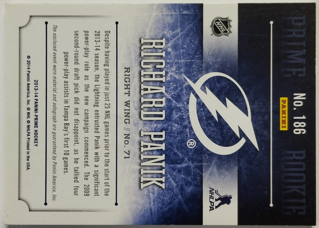 2013-14 Panini Prime #186 Richard Pánik RC SN 017/199