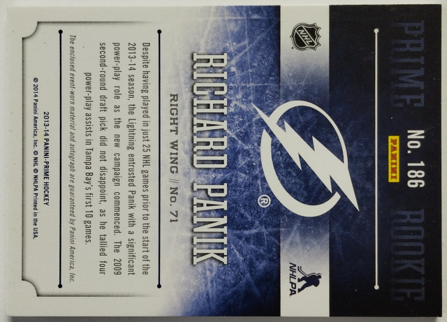 2013-14 Panini Prime #186 Richard Pánik RC SN 196/199