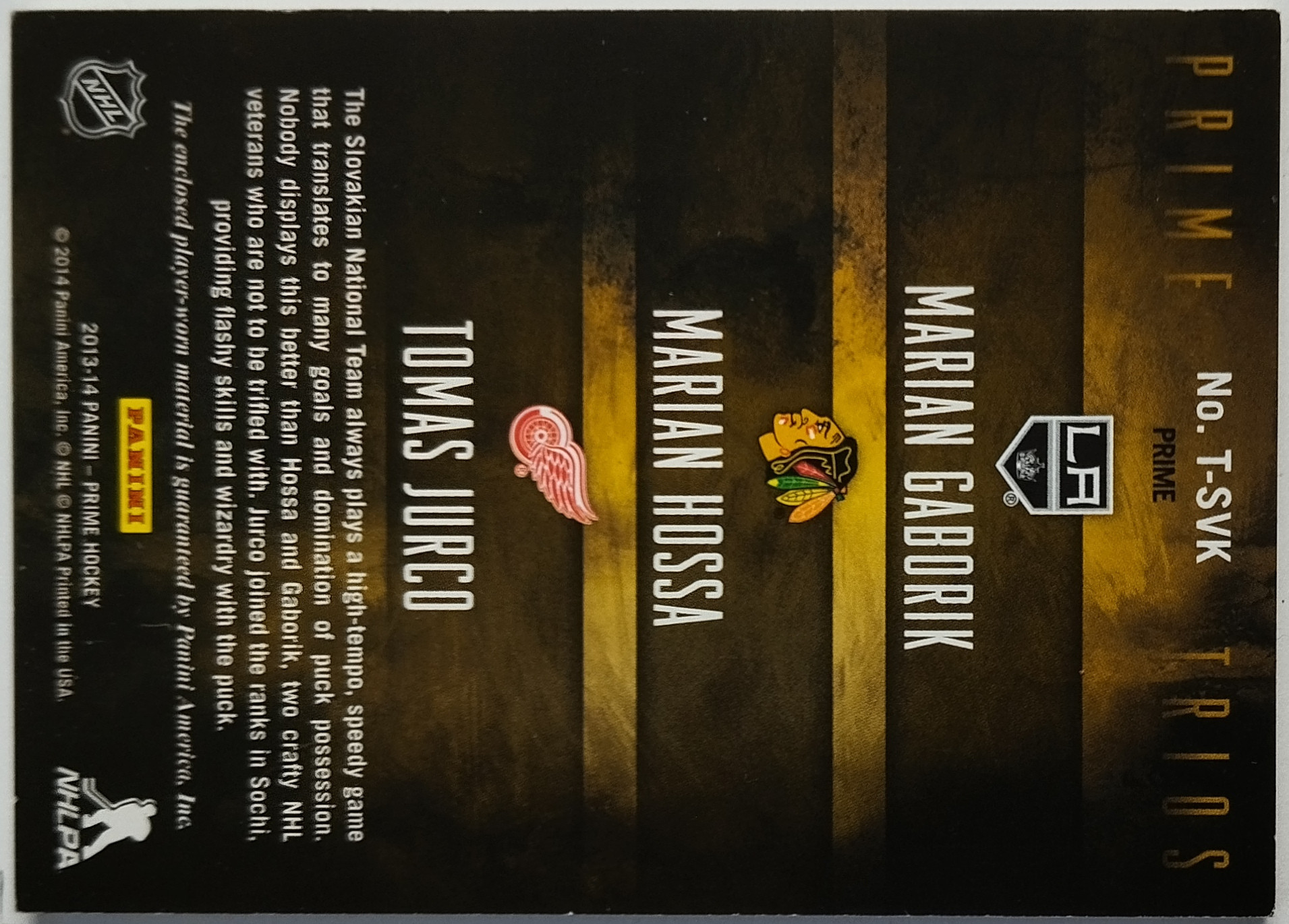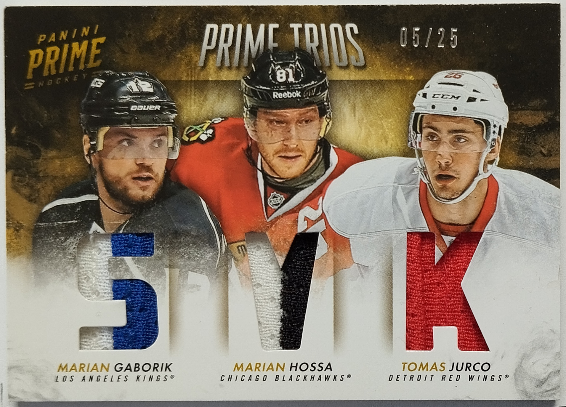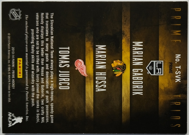 2013-14 Panini Prime Trios Prime #T-SVK Marián Gáborík/Tomáš Jurčo/Marián Hossa SN 05/25