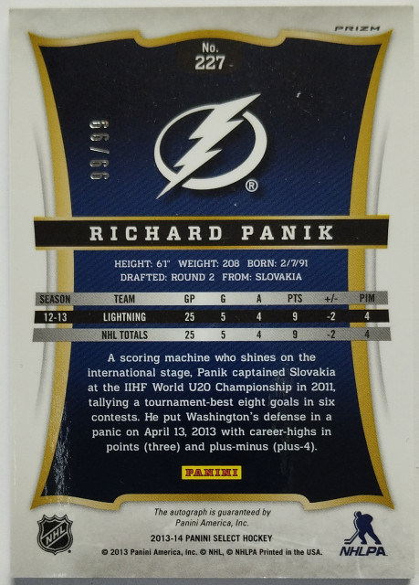 2013-14 Panini Select Prizms #227 Richard Pánik RC SN 99/99