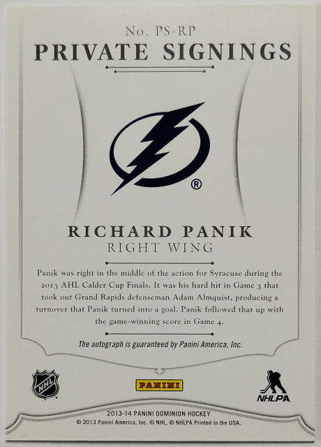 2013-14 Panini Titanium Private Signings #PS-RP Richard Pánik SN 011/199
