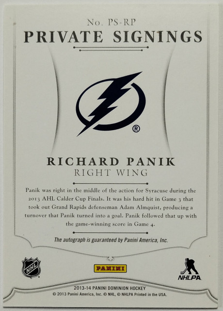 2013-14 Panini Titanium Private Signings #PS-RP Richard Pánik SN 041/199