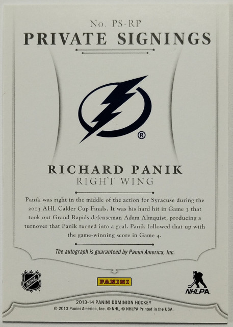 2013-14 Panini Titanium Private Signings #PS-RP Richard Pánik SN 065/199