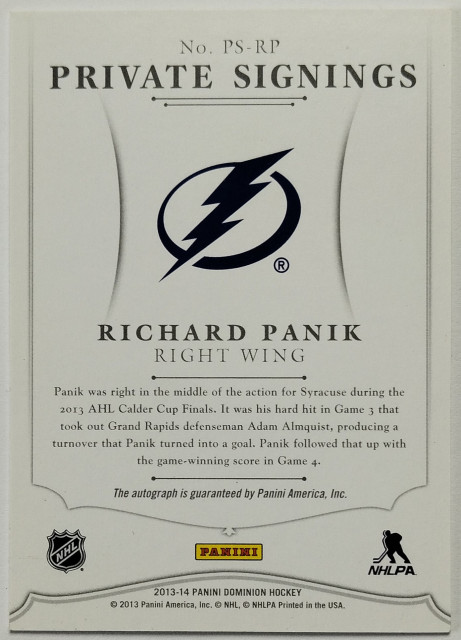 2013-14 Panini Titanium Private Signings #PS-RP Richard Pánik SN 134/199
