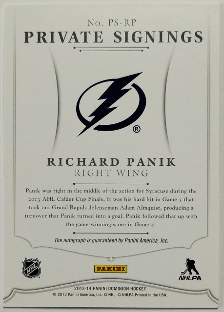 2013-14 Panini Titanium Private Signings #PS-RP Richard Pánik SN 152/199