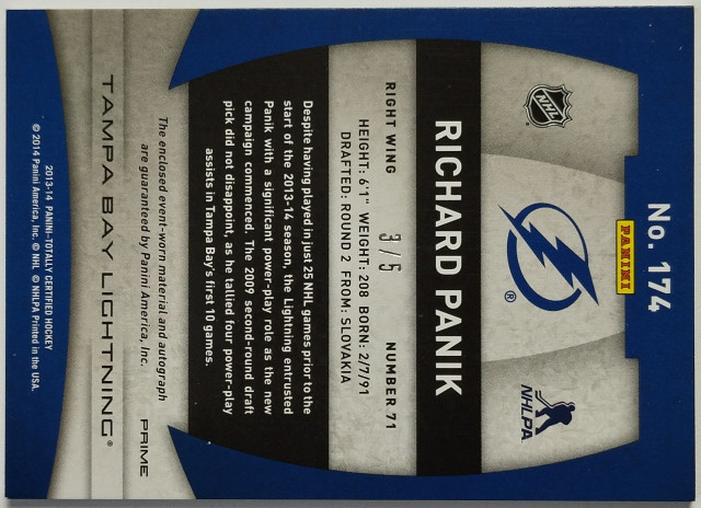 2013-14 Panini Totally Certified Rookie Auto Jerseys Patch Mirror PG #174 Richard Pánik SN 3/5