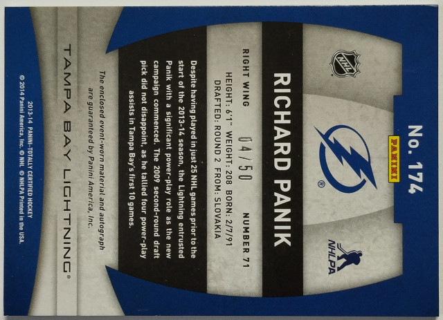 2013-14 Panini Totally Certified Rookie Autograph Platinum Red Jersey #174 Richard Pánik SN 04/50