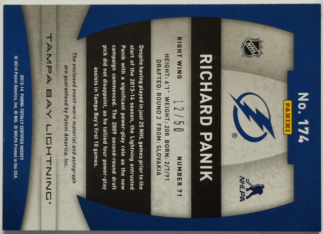 2013-14 Panini Totally Certified Rookie Autograph Platinum Red Jersey #174 Richard Pánik SN 12/50