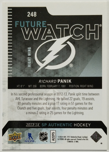 2013-14 SP Authentic Future Watch #248 Richard Pánik RC SN 1086/1299