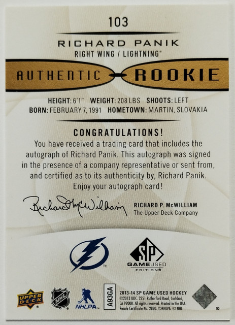 2013-14 SP Game Used Gold Autographs #103 Richard Pánik
