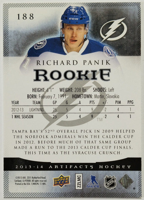 2013-14 Upper Deck Artifacts Sapphire #188 Richard Pánik RC SN 35/85