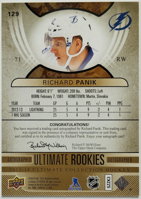 2013-14 Upper Deck Ultimate Collection #129 Richard Pánik RC SN 054/399