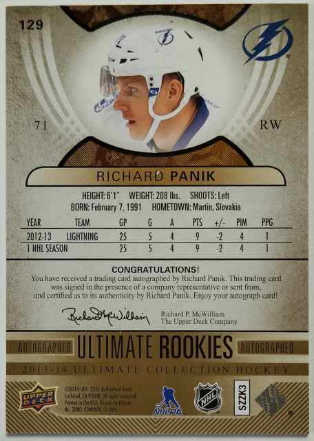 2013-14 Upper Deck Ultimate Collection #129 Richard Pánik RC SN 165/399