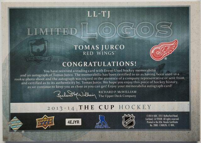 2013-2014 Upper Deck The Cup Limited Logos #LL-TJ Tomáš Jurčo SN 03/50
