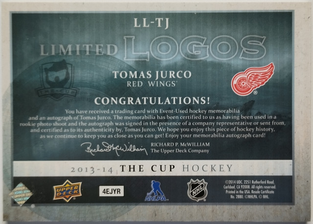 2013-2014 Upper Deck The Cup Limited Logos #LL-TJ Tomáš Jurčo SN 08/50