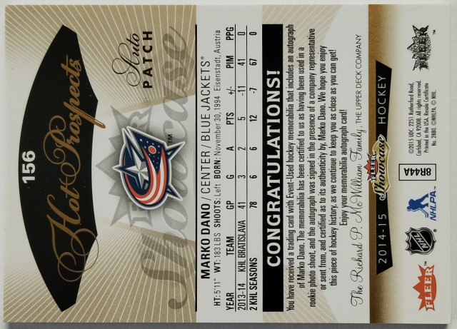 2014-15 Fleer Showcase Hot Prospects Auto Patch #156 Marko Daňo SN 143/375