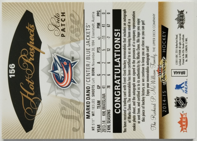 2014-15 Fleer Showcase Hot Prospects Auto Patch #156 Marko Daňo SN 221/375