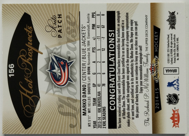 2014-15 Fleer Showcase Hot Prospects Auto Patch #156 Marko Daňo SN 324/375