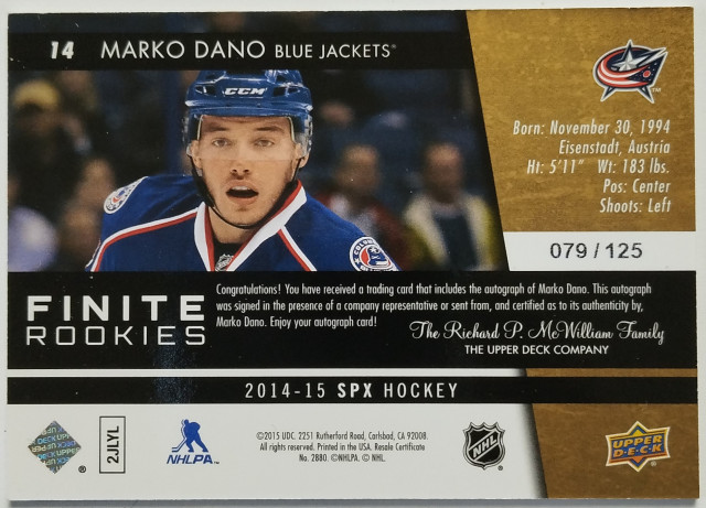 2014-15 SPx Finite Rookies Autographs #14 Marko Daňo SN 079/125