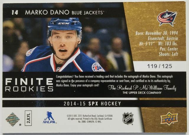 2014-15 SPx Finite Rookies Autographs #14 Marko Daňo SN 119/125