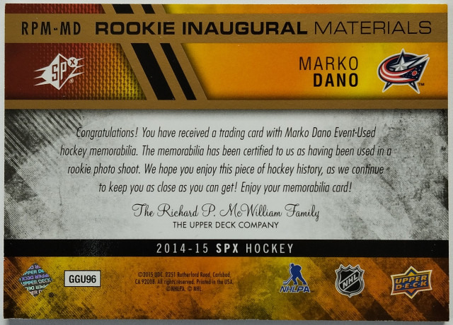 2014-15 SPx Rookie Inaugural Materials Patch #RPM-MD Marko Daňo SN 37/99