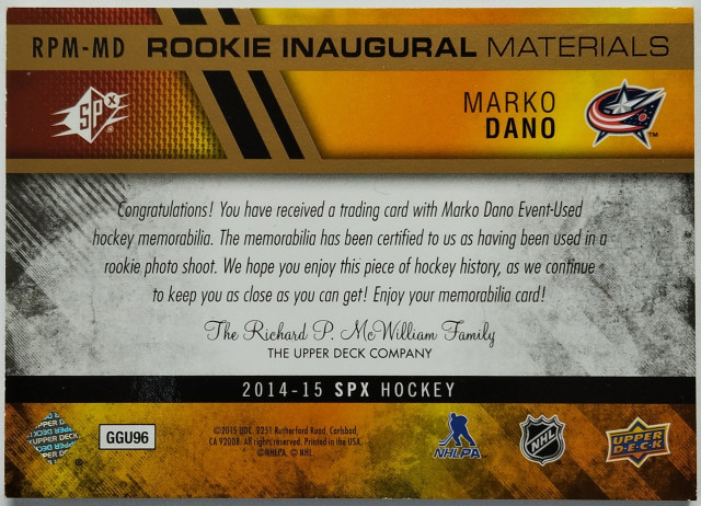 2014-15 SPx Rookie Inaugural Materials Patch #RPM-MD Marko Daňo SN 90/99